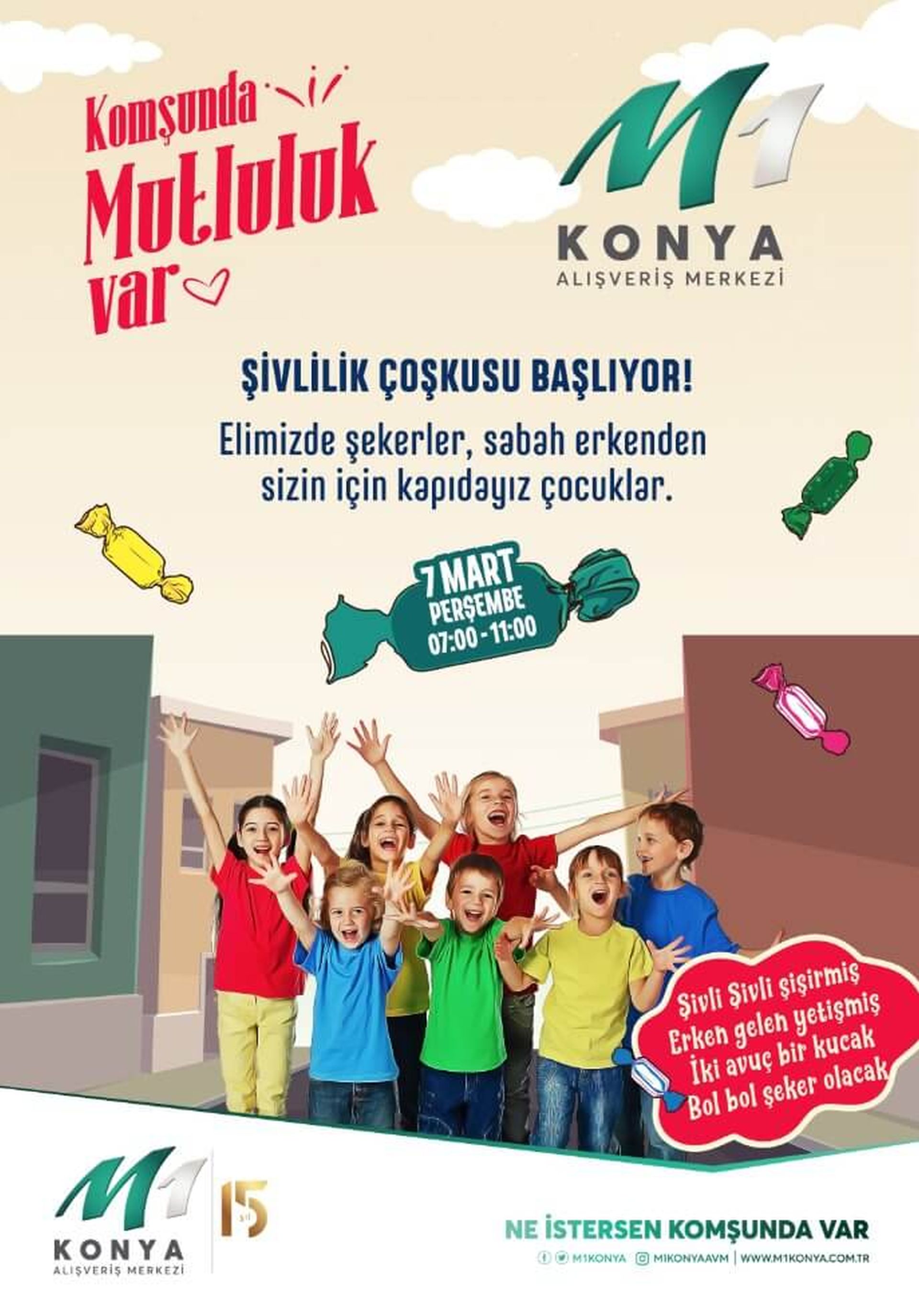 M1 Konya Alışveriş Merkezi,Konya’nın ilk modern alışveriş merkezilerinden biri olup 15 yılı aşkın süredir farklı beğeni ve ihtiyaçlara cevap veren bir alışveriş merkezi olma özelliği taşımaktadır. 180.000 m2 alan üzerinde 49.000 m2 kiralanabilir alana sahip olan M1 Konya Alışveriş Merkezi’nin geniş ve rahat açık otoparkı, ihtiyaçlara cevap veren mağaza karması, tek katlı mimarisi ile rahat ve keyifli alışveriş imkanı ve yıl boyu düzenlenen etkinlik ve kampanyalarıyla eğlenceli ve kazançlı alternatifler sunması, M1 Konya Alışveriş Merkezi’ni farklı ve cazip hale getiren özellikleridir.Tamer Yılmaz
